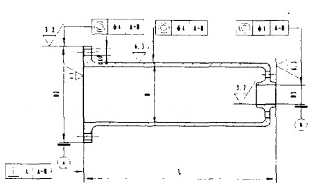 卷筒組是起重機、啟閉機主要受力部件,起重機配件用卷筒外繞起重鋼絲繩,其結構(示意)如圖2,從圖中可看出,它與大齒輪采用止口定位、螺栓組聯接,裝配后要保證卷筒上的軸承與大齒輪上的軸承同軸,精度要求在8級。