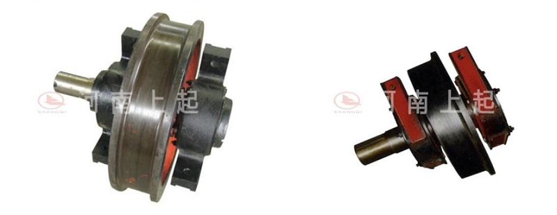 卸下車輪軸端聯軸器的連接螺栓,卸下車輪組角型軸承箱與端梁連接的緊固螺栓,隨后使用起重螺桿或千斤頂將起重機橋架頂起,使車輪踏面離軌道頂面約10毫米,再使用撬杠等工具撬動車輪組,沿軌道面將其拉出,以便更換。